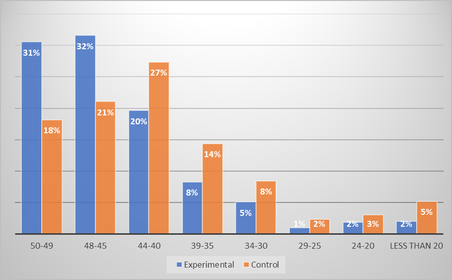 Nearly one-third of the Experimental group answered 49 to 50 items correctly!